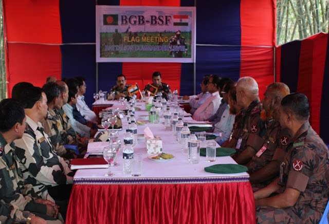 চাঁপাইনবাবগঞ্জস্থ ৫৯ বিজিবি ব্যাটালিয়নের কমান্ডার লে.কর্নেল হাসান মোর্শেদ এক প্রেস নোটে পতাকা বৈঠকের বিস্তারিত জনান, চরধরমপুর বিওপি এলাকায় বাংলাদেশ ও ভারতের পানি উন্নয়ন বোর্ড ও ইরিগেশন ওয়াটার ওয়েজ বিভাগের প্রধান প্রকৌশলীদের উপস্থিতিতে মহানন্দা ও পুর্নভবা নদীর পাড় রক্ষায় সিসি ব্লকের বন্ধ থাকা কাজ শুরু নিয়ে বিস্তারিত আলোচনা হয়। বৈঠকে বাংলাদেশী এলাকায় গিলাবাড়ী বিওপির বিপরীতে সীমান্ত পিলার ২০১/৭-আর হতে ২০১/৯-আর পর্যন্ত এবং ভারতীয় অংশে সীমান্ত পিলার ২০১/৬ আর হতে ২০১/৮আর পর্যন্ত ১৫০ মিটার সিসি ব্লকের বন্ধ থাকা কাজ আরাম্ভের ব্যাপারে উভয়পক্ষ একমত হন। এছাড়া ভারতীয় অংশের ৩ টি কাজের মধ্যে কালাইবাড়ী ক্যাম্পের বিপরীতে সীমান্ত পিলার ২১২ হতে ২১৩ এর মধ্যে ৪০০ মিটার কাজ পূর্ব অনুমোদন থাকায় কাজ শুরুতে কোন বাধা নেই মর্মে সিদ্ধান্ত হয়। অনুরাধাপুর ক্যাম্পের বিপরীতে সীমান্ত পিলার ২১৯/১০-আর হতে ২১৯/২-আর পর্যন্ত ১৭০০ মিটার পুনর্ভবা নদীর তীর রক্ষা কাজ শুরুর সিদ্ধান্ত গৃহীত হয়। সীমান্ত পিলার ২১৯/১০ আর হতে সামনের ৫০ মিটার বর্ধিত কাজ উভয় দেশের ডিজাইন ইঞ্জিনিয়ারের উপস্থিতিতে করা যাবে বলে সিদ্ধান্ত হয়। অবশিষ্ট ৩০০ মিটার কাজ উভয় দেশের ডিজাইন ইঞ্জিনিয়ার পর্যায়ে যৌথ জরিপ শেষে শুরু করার বিষয়ে সিদ্ধান্ত গ্রহণ করা হবে বলে আলোচনা করা হয়। আশরাফপুর ক্যাম্পের বিপরীতে সীমান্ত পিলার ২০১/৫০-আর হতে ২০২ মেইন পিলার পর্যন্ত ১১০০ মিটার ঢালের মাটি কেটে ডাম্পিং এবং পিচিং এর কাজ আরম্ভের বিষয়ে কোন বাধা নেই বলে সিদ্ধান্ত হয়। ওই এলাকার ১৬০ মিটার নদীর তীর রক্ষার কাজ উভয় দেশের প্রকৌশলীদের উপস্থিতিতে এ মাসের শেষ সপ্তাহে যৌখ জরিপ সম্পন্ন করে শুরুর সিদ্ধান্ত গ্রহণ করা হবে বলেও আলোচনা হয়। বৈঠকে সীমান্ত এলাকায় দিবা-রাত্রী যৌথ সমন্বিত টহল বৃদ্ধির মাধ্যমে চোরাচালান, মাদকদ্রব্য পাচার এবং গরু পাচার নিয়ন্ত্রনের জন্য টহল কার্যক্রম পরিচালনার বিষয়ে উভয় বাহিনীর কমান্ডারগণ একমত হন। এছাড়া উভয় দেশের খেলোয়াড়দের সমন্বয়ে ম্যাচ পরিচালনার মাধ্যমে সম্প্রীতি বৃদ্ধির উদ্যেগ গ্রহণ করা হয়।